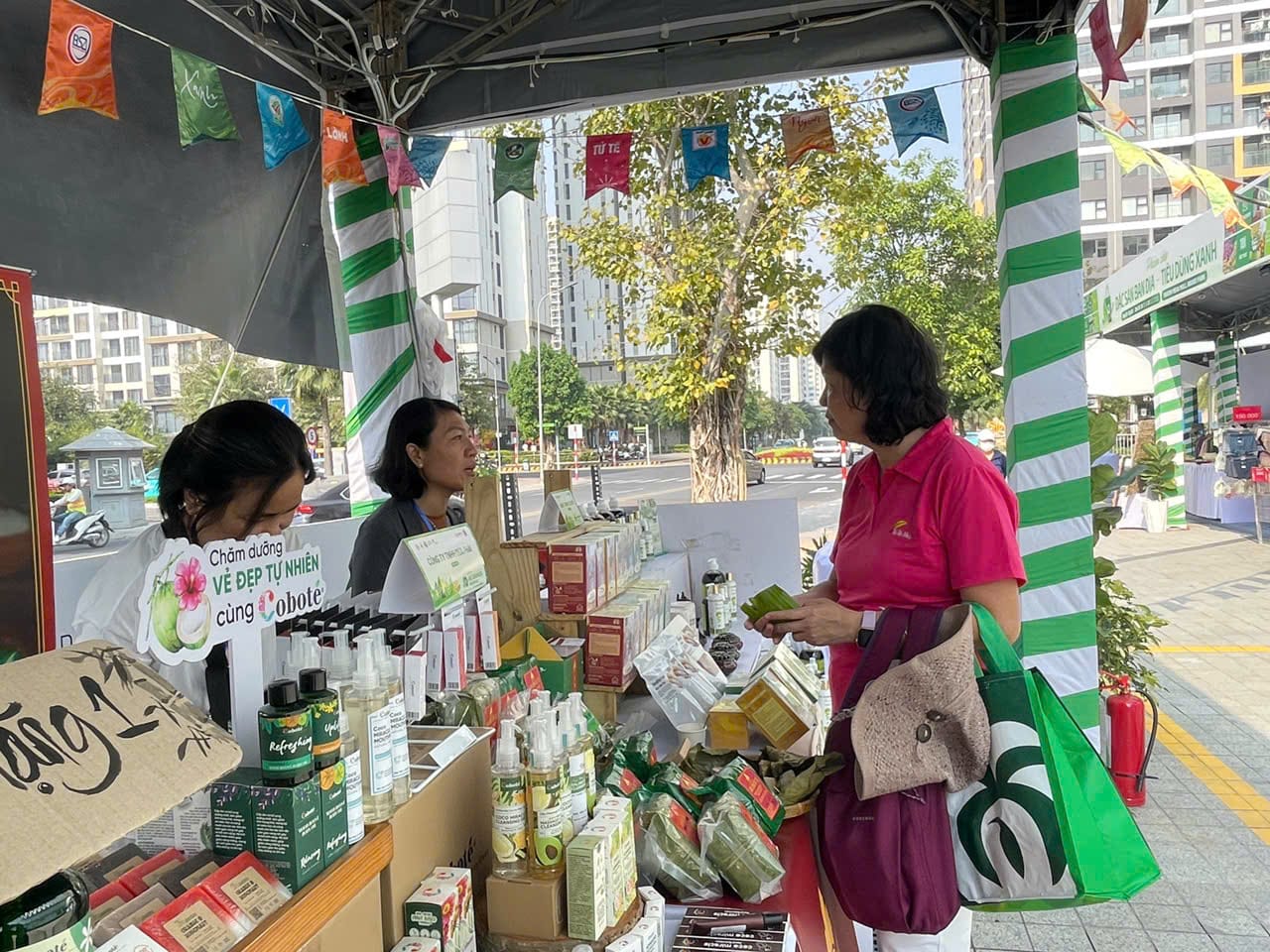 - Khu vực riêng của Chương trình Khởi nghiệp Xanh & Phát triển Xuất khẩu (BSA & Vina T&T) với các sản phẩm tiêu biểu: trà sâm dây Ngọc Linh, trà khổ qua rừng, sản phẩm tiêu dùng xanh từ xơ mướp, bánh tráng ăn vặt, nước cốt chanh mật ong cô đặc…