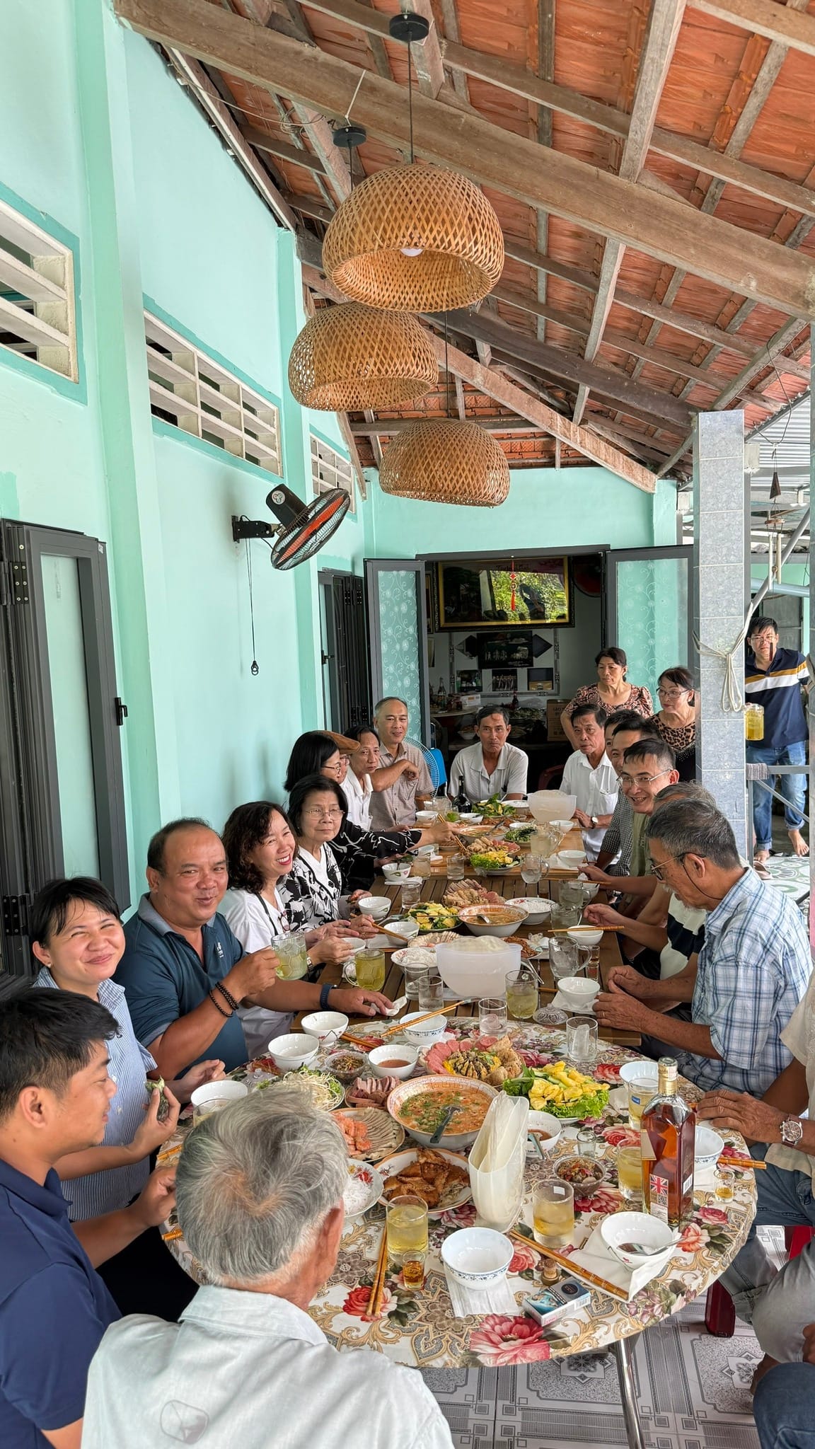 Anh bạn chuyên làm phim ẩm thực trên truyền hình Đỗ Khuê vừa bên Tây về, có nhận xét. Ít khi được ăn cái đám giỗ còn đông đảo bà con đến tự nấu kiểu này. Bây giờ người ta kêu nhà hàng đem lại toàn bộ hay theo từng món hay chính người tham dự tự mang tới để góp. Tự nấu nên có những câu chuyện cảm động. Món cà ri vịt với món kiểm này dì Mưới Út (cô giáo làng Bình Hưng, là má của nhà báo Hoàng Tuyên, người mời giỗ) thường hay nấu nên mình cùng ăn để nhớ bà giáo mình thương. Món canh chua vọp là món anh Ba Phước thích (tôi nghĩ thầm, ảnh luôn thích vọp chấm muối ớt mà bữa nay lại chấm nước mắm y). Còn đây là bánh cống, mắm cá trắng của chú… anh… thích, mỗi món có gắn một tên người. Cả tôi cũng được gắn với món xôi (mọi người nhớ là tôi mê nếp) nên nay có xôi vò cơm rượu.