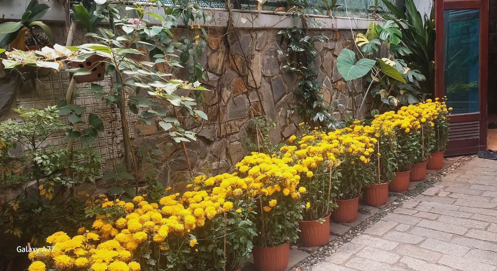 Mai với cúc, những bông hoa không cao sang gì, nhưng mùa xuân không thể thiếu trong nhà ông Phước. Hai thứ, đầu năm nay thi nhau nở rôm rả là báo tin vui đó chứ? Nhà có một ông Phước, cũng là có Phước rồi, lại có tới 2 lần Phước thì thôi, cũng ráng cho xứng với ơn Phước trời cho vậy.