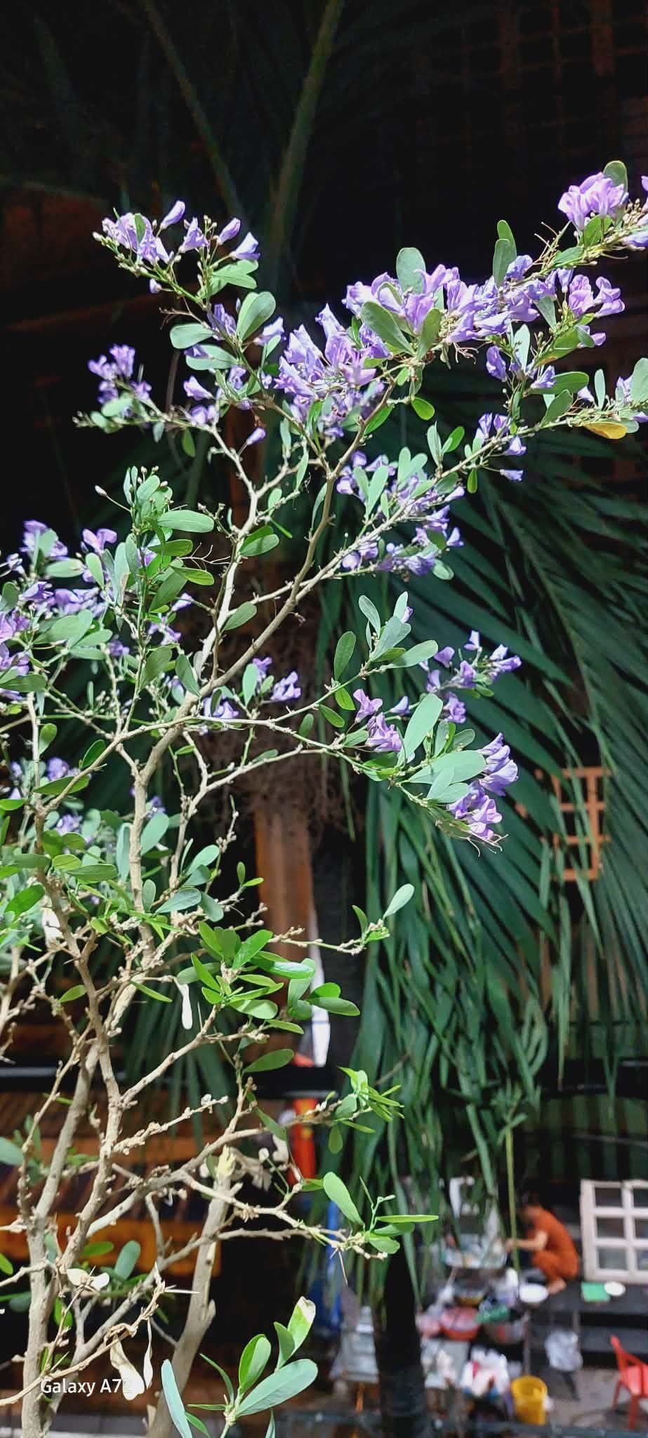 Sáng sớm, mở cửa ra khoảng sân bé xíu trước phòng "người ấy", tôi vui mừng rộn rã vì 2 cây linh sam trước phòng bỗng nở rộ hoa tím. Vậy là tụi nhỏ "hết giận". Chiều qua lá vàng nhuộm cả một góc tàng lá. Đi thi về mình mới có chút thời gian "trần tình" với đám lá vàng phủ một góc cây linh sam, coi dáng cây thiệt âu sầu. Mình rù rì: đừng giận tui nữa nhé, tuần qua đi Hà Nội rồi Đồng Tháp rồi học thi rồi họp nên quên tưới; giờ tui "tiếp nước" liền, vuốt giận, hết giận nha.