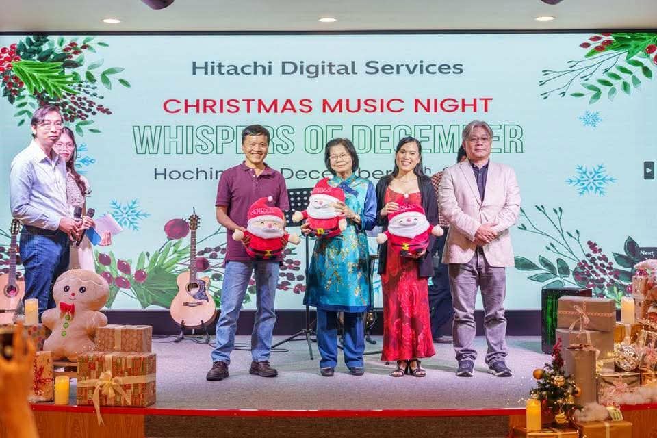 Mình vừa đến thăm và dự đêm nhạc Music Performance & Early Christmas Party theo lời mời của anh sếp công ty Hitachi Digital Services (DS) Nguyễn Bá Quỳnh cùng hai người bạn là bạn Hà Lê, Phó Tổng Giám đốc công ty Đồng Lợi và anh Lương Việt Quốc, CEO công ty drone RTR. Là bạn cũ của anh Quỳnh khi mình thường đến làm việc với các công ty ở Công viên phần mềm Quang Trung, khi ấy, tiền thân của công ty anh phụ trách cũng chỉ ở qui mô vừa, mà nay đã phát triển lớn mạnh với 1200 nhân sự và ba địa điểm hoạt động TPHCM, Đà Nẵng và Hà Nội.