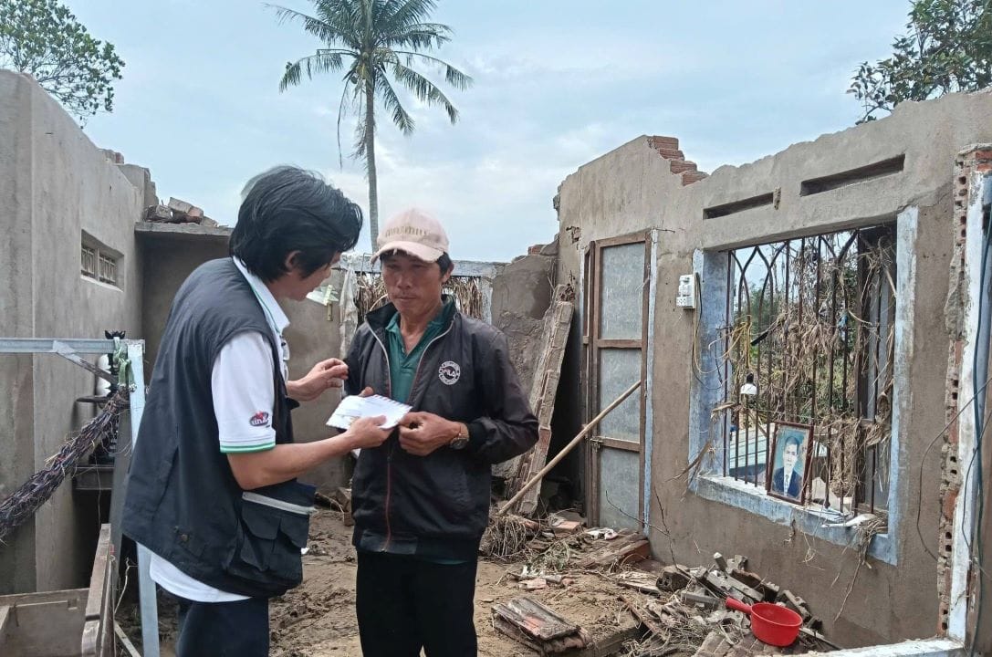 Giữa cảnh tan hoang ấy, nhóm cứu trợ của Hiệp hội DN HVNCLC và Trung tâm BSA đã thay mặt các tấm lòng, gửi đến bà con những gia đình mất trắng ở đây mỗi hộ 5 triệu đồng, như một cách động viên bà con lúc ngặt nghèo nhất.