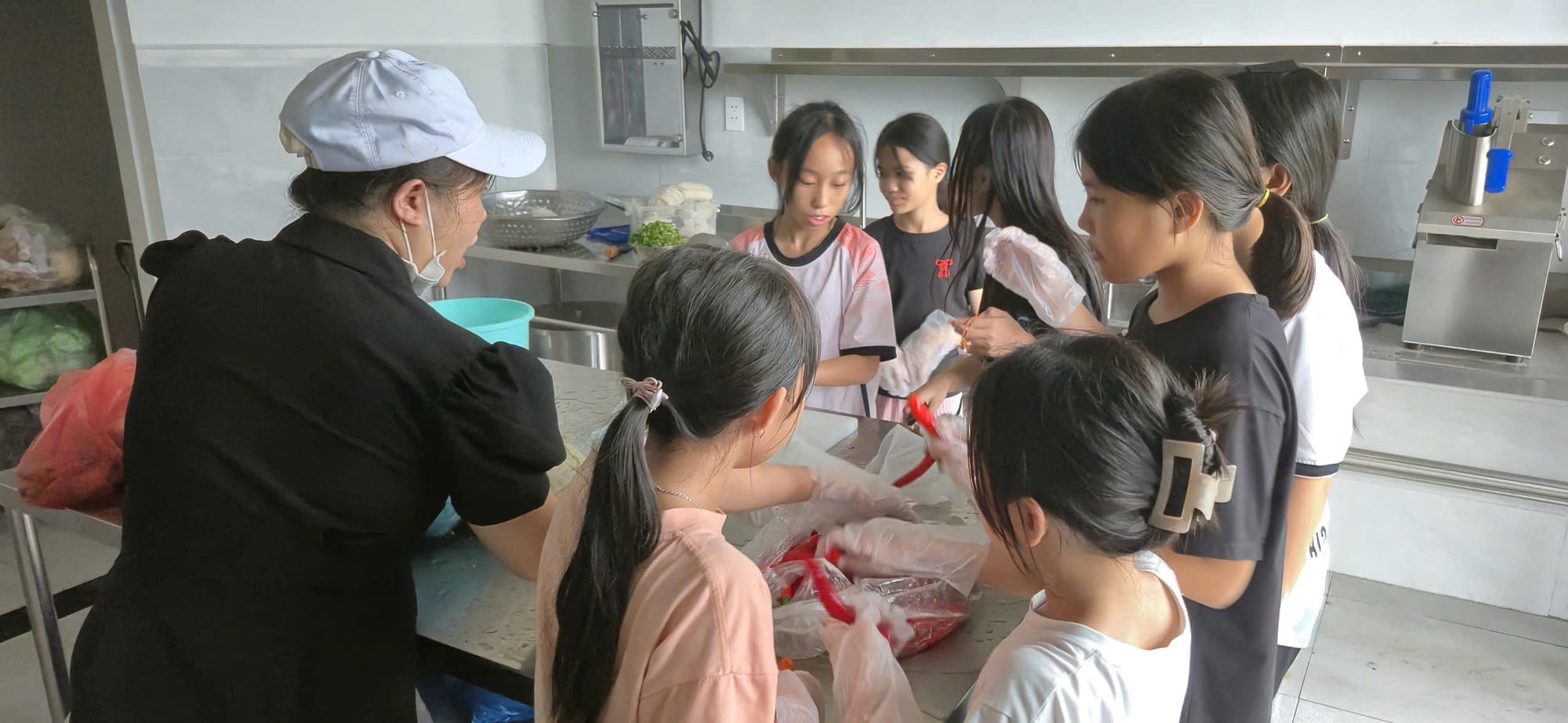 Mấy cô bé Quảng Nam nói nhão nhoẹt, con muốn nấu bếp, chừ nấu răng cô, cô bày con với cô. Phương kể, các bạn ở Bến Tre hay khoe là giàu nước dừa, có món độc đáo là món trứng vịt lộn luộc bằng nước dừa, làm bánh xèo cũng thật hấp dẫn vì vỏ bánh pha nước dừa… Hai ngày cuối tuần là cả con trai con gái hào hứng rủ nhau làm bếp.