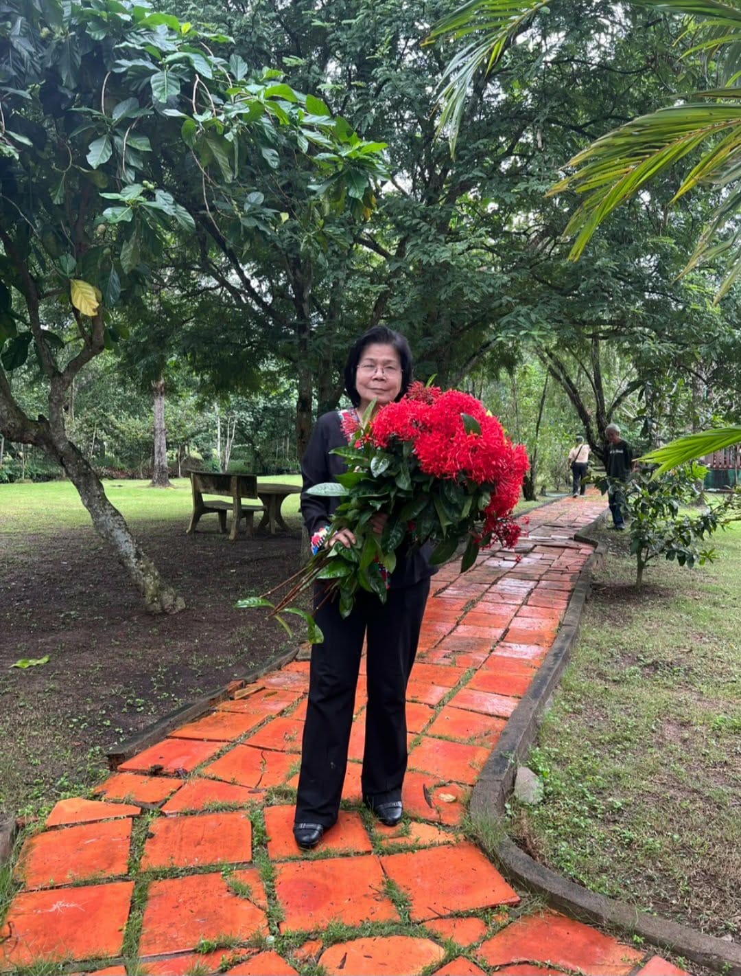 Còn đường vô nhà cô giáo làng, dì Mười má của HT thì đầy hoa, hoàng anh, hoa giấy rộn ràng khoe sắc (nhắc để đăng ảnh, vui mắt lắm). Nhưng đi trên con đường làng quê nào, tôi cứ dõi tìm vì nhớ, một loài bông thật nhà quê, không sắc không hương mà gây nhớ chập chùng: bông trang. Con đường vô nhà anh, lần tôi về thăm quê nghèo của anh "ra mắt" lần đầu tiên (hồi đó còn chưa cưới) từ hơn 40 năm trước cũng đầy bông trang mà nay không thấy nữa. Chỉ còn trong tôi, vĩnh viễn, một bó trang đỏ rực, nở tưng bừng. Tôi ôm bó bông to đi từ bến sông nhà cô bạn nhỏ T.N vô nhà, cố rảo bước cho nhanh vì cuối đường đã thấy anh giơ tay đứng đón, mỉm cười.